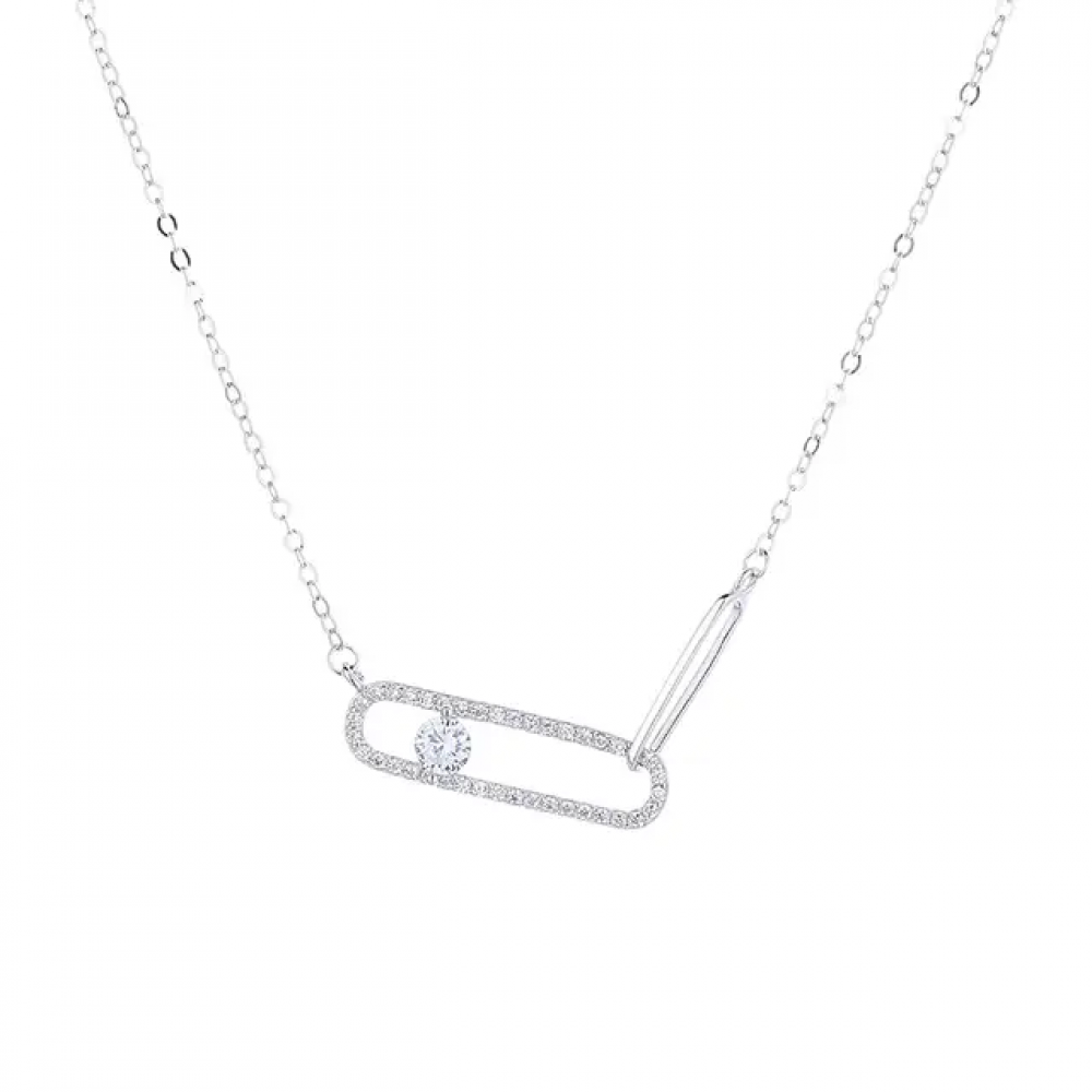 تتميز بتصميم فريد من نوعه على شكل مشبكين أحدهما متحرك والآخر مرصع بحجر زركون مبهر عيار 1 قيراط ، من المؤكد أن هذه السلسلة ستلفت الأنظار وتضيف لمسة من الرقي إلى أي مجموعة. حجر الزركون محاط بأحجار الزركون الصغيرة ، مما يزيد من جاذبية السلسلة التي لا يمكن إنكارها.