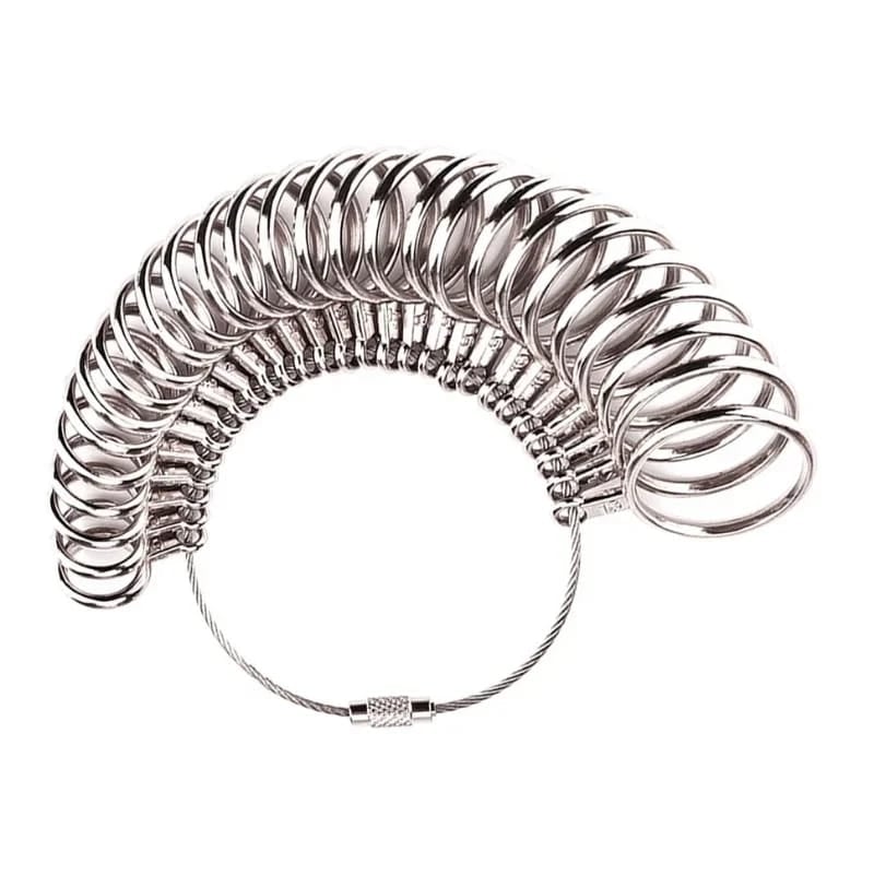 2. الشريط المرن: يمكن استخدام شريط مرن أو شريط قياس لقياس محيط إصبع اليد. يتم لف الشريط حول الجزء الأوسط من الإصبع بشكل محكم وقراءة القياس عند النقطة التي يلتقي فيها الشريط مع نفسه. يتم تحويل هذا القياس إلى مقاس الخاتم باستخدام جدول الحجم المتاح في المحلات المختلفة.